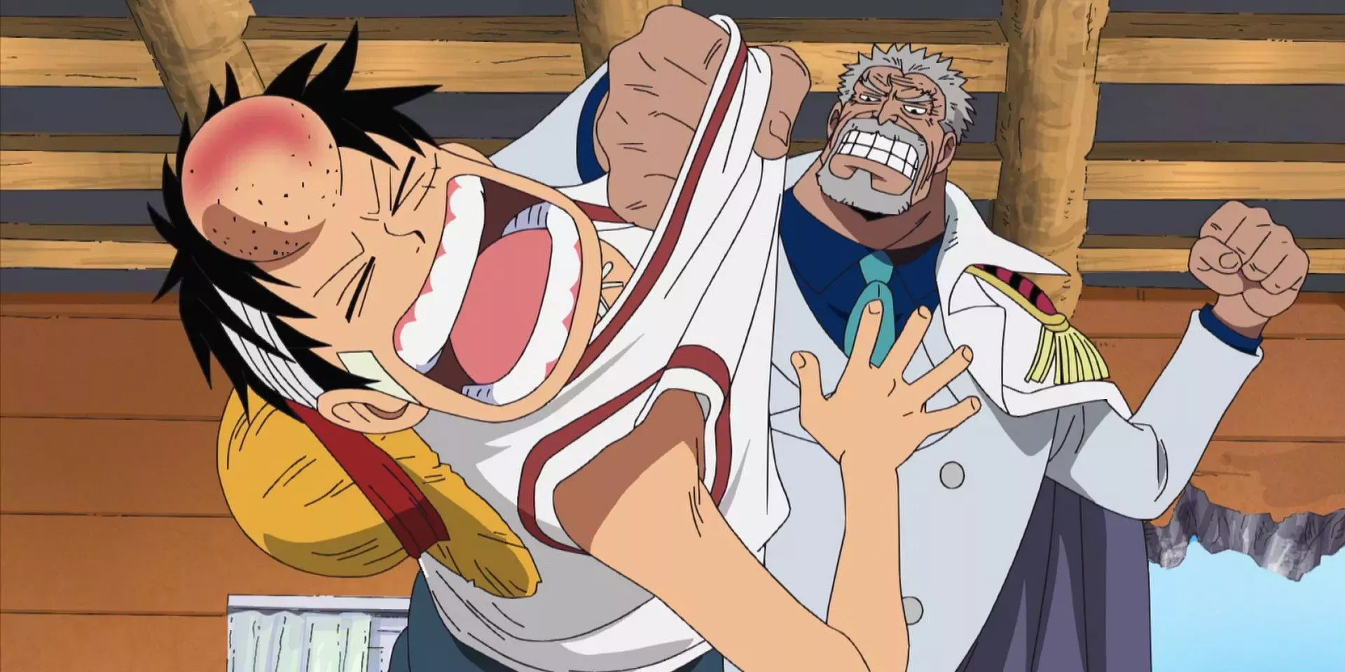 Y lo que es más sorprendente, Garp comienza a reprender a Luffy por haberse convertido en un pirata en lugar de un marine, a pesar de todo el entrenamiento que le dio y un Luffy asustado se refiere a Garp como "abuelo". Sorprendentemente, Luffy, intrépido como es, está aterrorizado por Garp, careciendo de su habitual bravuconería e informando a los Sombreros de Paja de que no lo subestimen.
