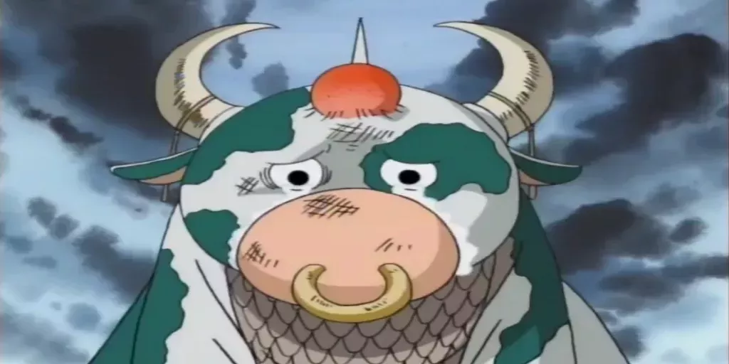 Cuando Mohmoo (la vaca marina propiedad de Hachi de los Piratas de Arlong) se detiene junto al barco de los Sombreros de Paja por primera vez en el episodio 31, Luffy decide atacarlo sin provocación alguna. Para colmo de males, Sanji engaña a la pobre criatura ofreciéndole algo de comida y luego también le ataca cuando se acerca.