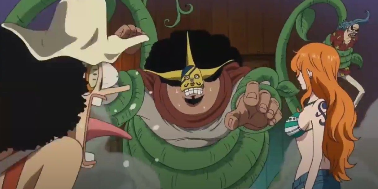 Esto proporcionó a Usopp una excelente oportunidad para hacer su segundo debut, utilizando su habilidad de estrella verde para atrapar a los villanos con enormes plantas devoradoras de hombres y constreñirlos dentro de sus grandes apéndices. De no ser por su ayuda, no se sabe si Nami habría tenido tiempo de usar su Clima Tact antes de ser abatida.