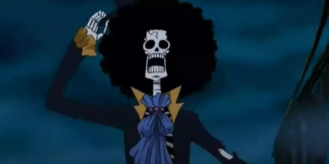 Cuando los Sombreros de Paja se adentraron en el Triángulo de Florian, pronto descubrieron un enorme barco presuntamente abandonado. Su único pasajero era Brook, un esqueleto que los recibió al son de su música.
