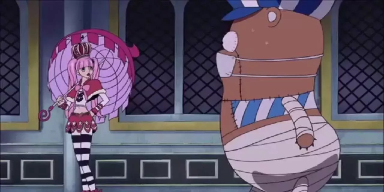 Kumacy era el asistente personal de Perona y su vasallo más leal. Mientras Nami, Usopp y Chopper buscaban un lugar donde esconderse, le abrieron la espalda y se colaron dentro.