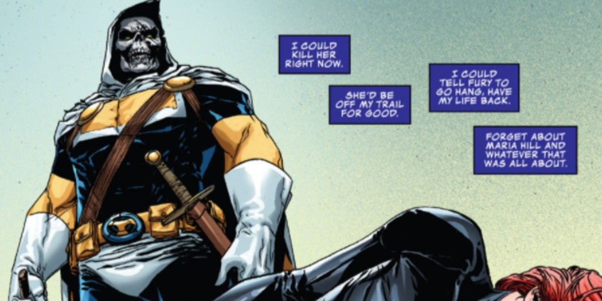 Taskmaster es uno de los villanos con más talento del Universo Marvel. Sus reflejos fotográficos le permiten copiar a algunos de los mejores luchadores del momento y ha derribado a muchos enemigos difÃciles. Sin embargo, por muy bueno que sea, Taskmaster no va a estar a la altura del estilo de las tres espadas de Zoro, y eso le va a costar.