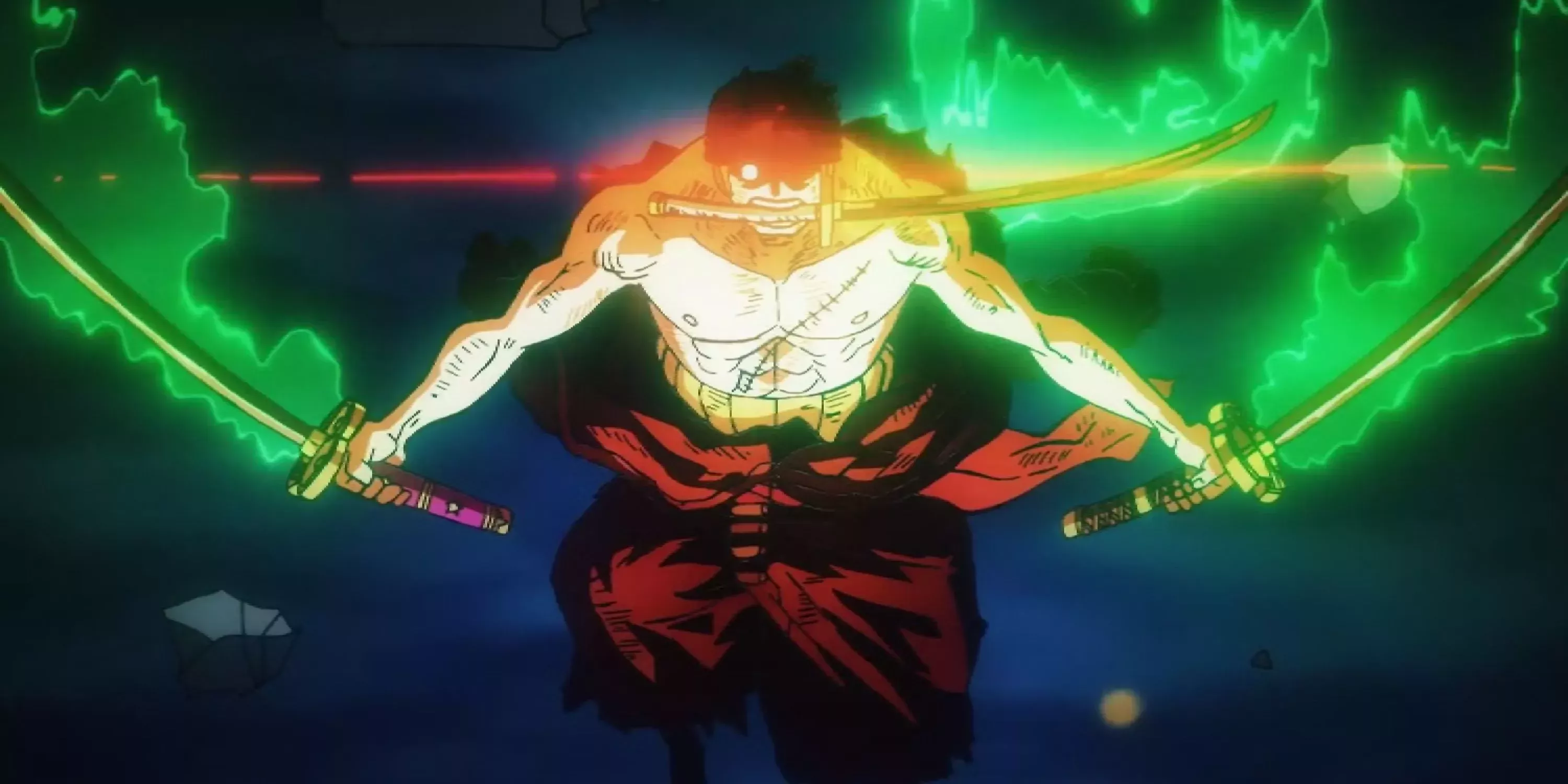 4Una batalla épica entre Zoro y King de los Piratas de las Bestias de Kaido termina con Zoro canalizando toda su fuerza en un nuevo y poderoso estilo de espada. Este es un enfrentamiento increíblemente duro para Zoro; King es uno de los casi extintos Lunarians, y sus poderes de otro mundo lo hacen casi imposible de dañar durante la pelea.