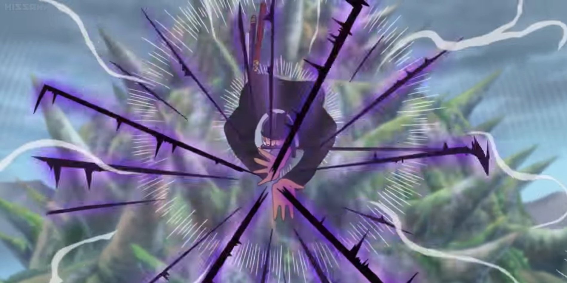 Otra técnica de espada mejorada que Roronoa desarrolló durante su entrenamiento y que debutó en Fishman Island. Esta es una mejora en uno de sus movimientos favoritos, Oni Giri. Esta versión del purgatorio es mucho más potente y deja a Hyouzou fuera de servicio después de un solo intento. Para realizar esta técnica, Zoro primero aparta la cara de su oponente antes de poner a Wado Ichimonji en su boca y colocar sus brazos diagonalmente sobre su pecho mientras blandía sus espadas. Luego se encorva antes de darse la vuelta y lanzarse rápidamente hacia su oponente. Para colmo, libera una diagonal de tres puntos que genera una potencia increíble. Esto fue más que suficiente para romper fácilmente todas las espadas de Hyouzou.