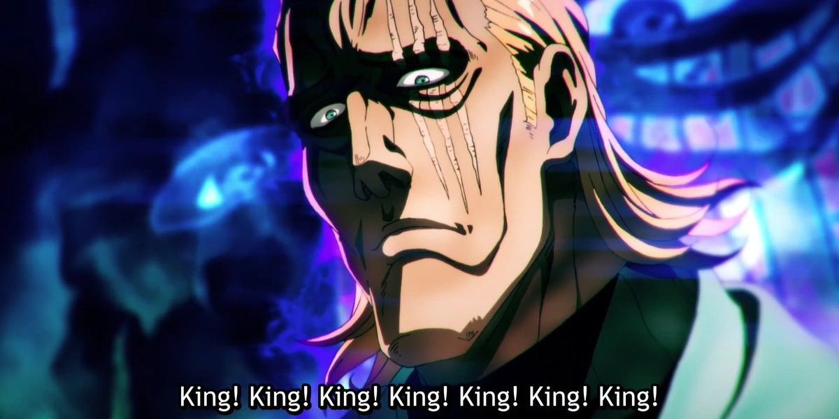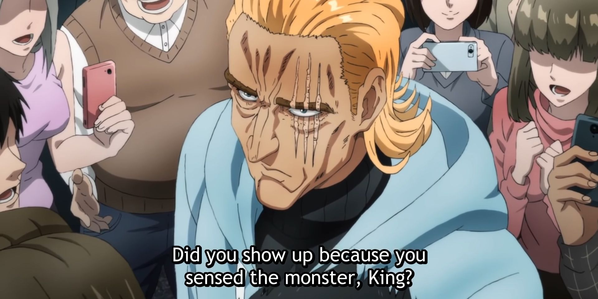Cuando King es introducido en el anime, camina a casa desde la tienda cuando se encuentra con un monstruo lagarto a tientas que sale a acosar a las mujeres en la calle. Pero tan pronto como alguien lo identifica como King, el monstruo se echa atrás y empieza a disculparse profusamente, sin querer ser herido por él.