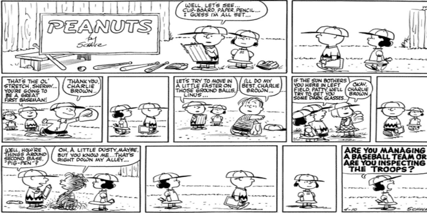 Este rasgo de carácter de larga duración se mostró en la época dorada de los Peanuts, en la que Brown pasa de limitarse a controlar a su equipo de béisbol a actuar como si fuera un sargento instructor. Por suerte, Lucy le llama la atención.