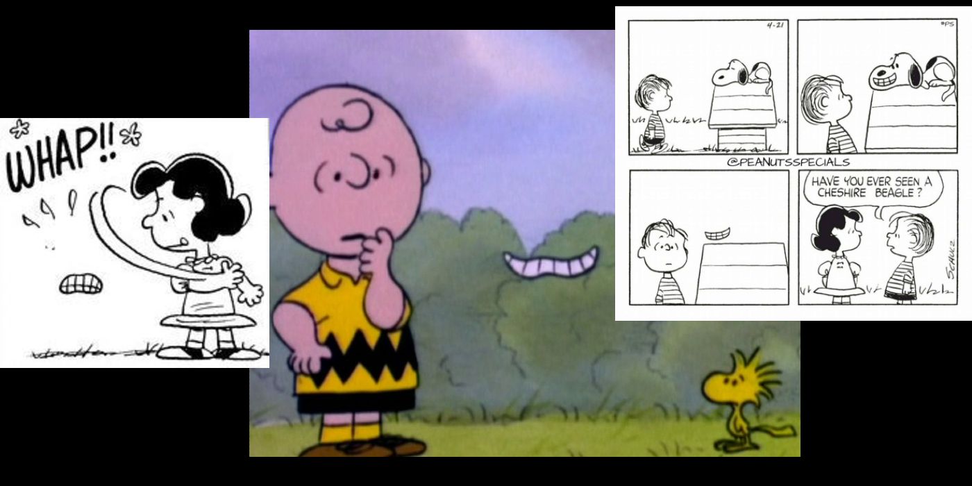 El Cheshire Beagle, un homenaje al Gato de Cheshire de Las aventuras de Alicia en el país de las maravillas, apareció por primera vez el 18 de abril de 1967. El truco que hace Snoopy para convertirse en el Beagle de Cheshire consiste en sonreír, haciendo que su cuerpo desaparezca y dejando sus dientes sin cuerpo y flotando en el aire. Snoopy menciona por primera vez que el truco es un "reflejo condicionado" que ha podido realizar durante años, y en la tira del Día del Padre de 1982, dice que lo aprendió de su padre.