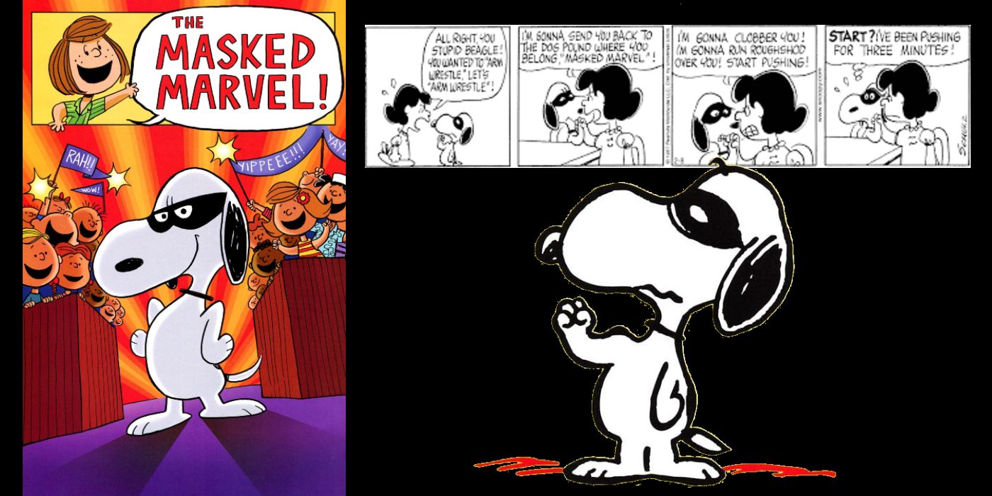 Con una máscara de dominó y, en ocasiones, con una capa, Snoopy se convierte en la "Maravilla Enmascarada", un campeón mundial de lucha de brazos. Cuando Lucy se declara campeona del mundo de lucha de brazos tras vencer a todo el vecindario en una tira del 9 de febrero de 1967, Charlie Brown llama a su arma secreta, Snoopy, como la "Maravilla Enmascarada".