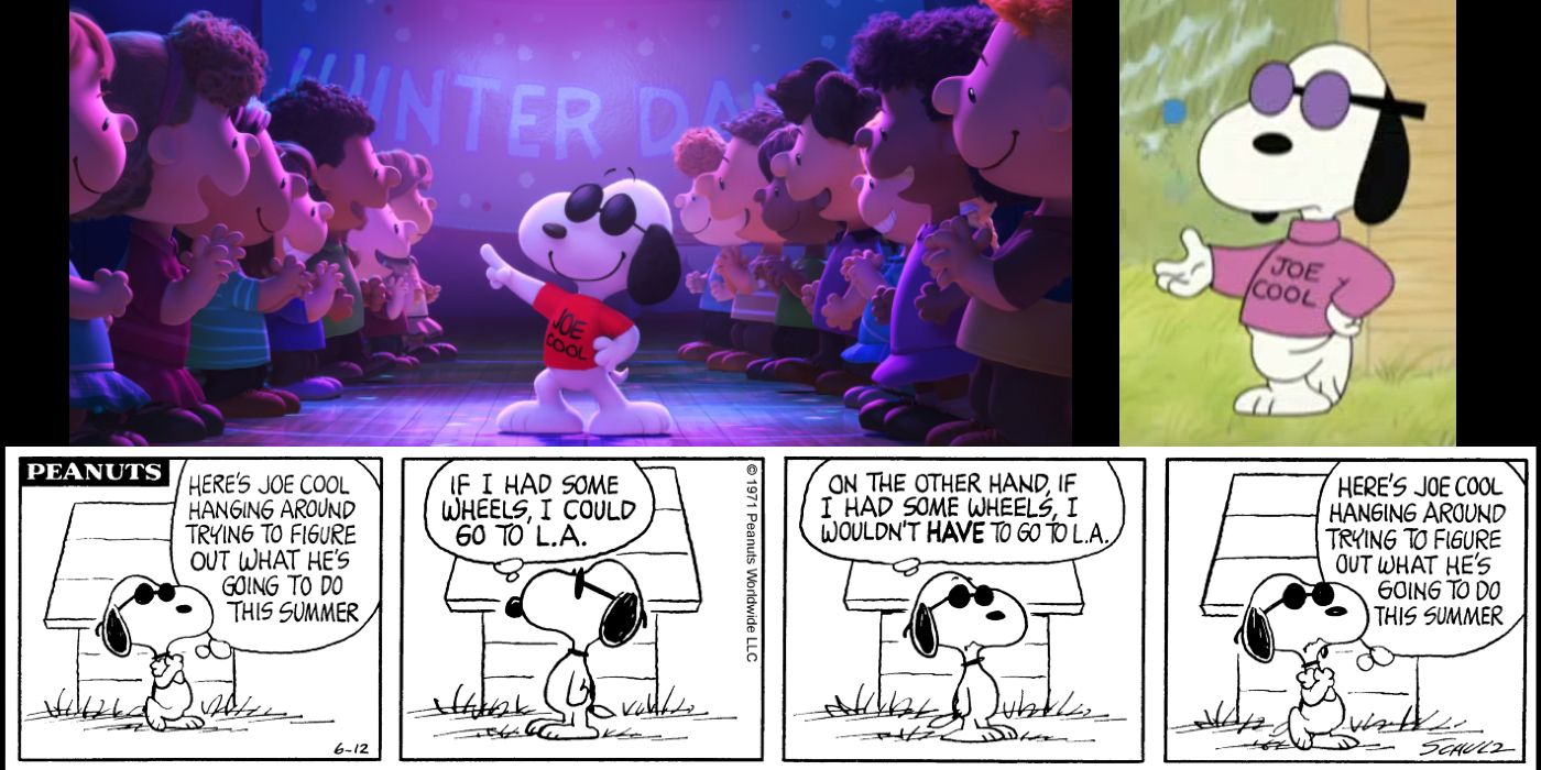 Nadie en el universo de Peanuts es más guay que el alter ego de Snoopy, Joe Cool. A la altura de The Fonz o James Dean, o al menos eso cree él, todo lo que tiene que hacer Snoopy para convertirse en Joe Cool es ponerse unas gafas de sol y una camiseta que permita a todos saber quién es. Joe Cool, que apareció por primera vez en la tira cómica el 27 de mayo de 1971, es el gran hombre del campus universitario y no teme hacérselo saber a los demás.