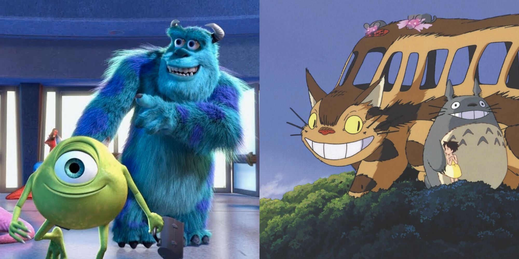 Monstruos S.A. es un trabajo de Disney sobre una fábrica de monstruos que trabajan asustando a los niños para usar sus gritos para impulsar su ciudad, y después de ser seguidos por uno de los niños de vuelta a su reino, son desterrados al mundo real para vivir entre los humanos. Uno puede ver las similitudes detrás de ambas películas en lo que respecta a los niños y los espíritus, y cómo coexisten juntos en sus respectivas realidades. El Totoro incluso hace un cameo en una de las otras películas de Disney, Toy Story 3, así que la influencia es difícil de ignorar.