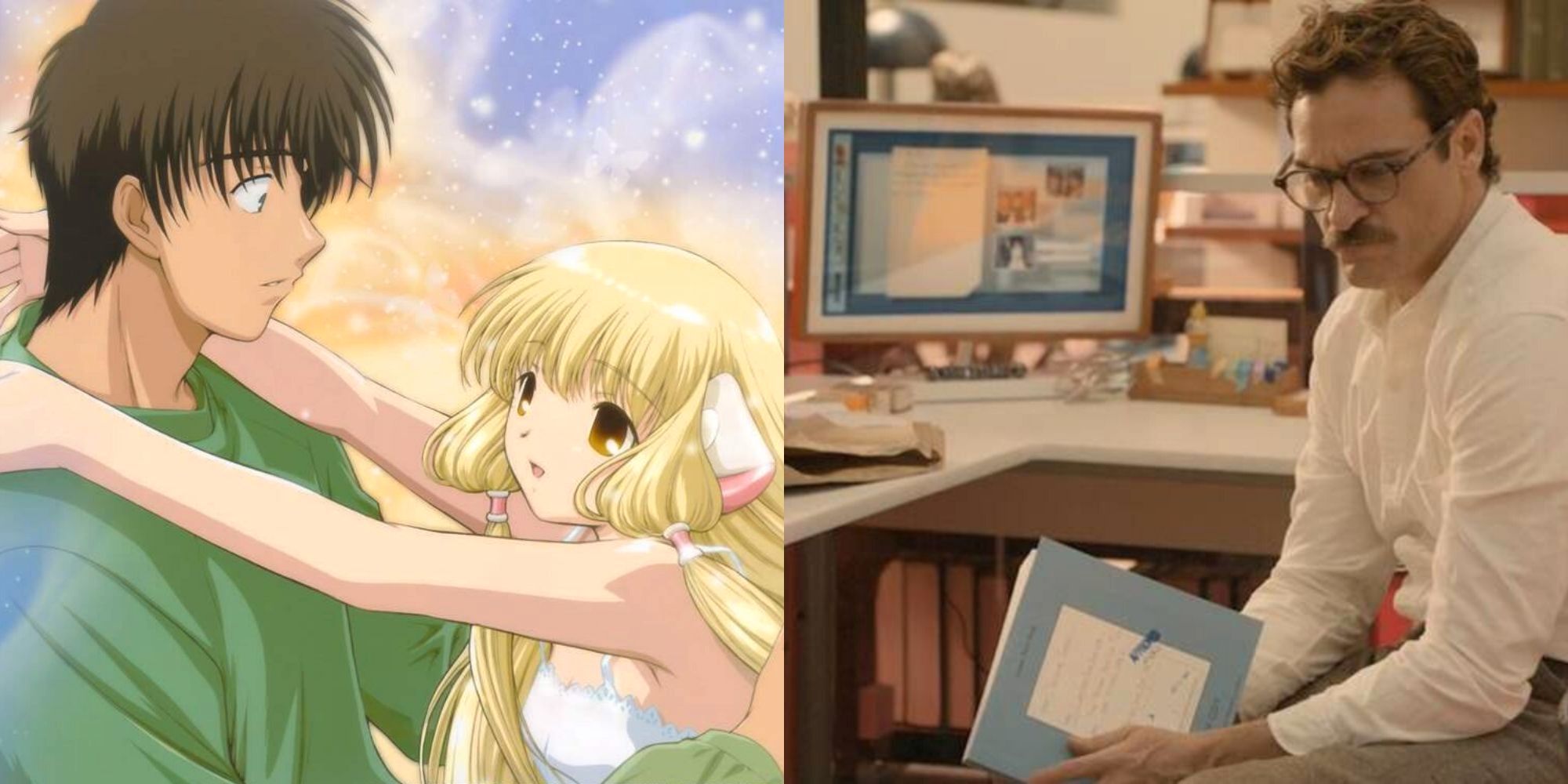 Chobits sigue la historia de un chico que se tropieza con un ordenador personal defectuoso colocado dentro del marco mecánico de una chica, y después de enamorarse de la máquina, se da cuenta de que puede ser capaz de tener libre albedrío. HER cuenta la historia de un escritor solitario y sensible que, sin querer, cae en una relación con su asistente personal de la IA.
