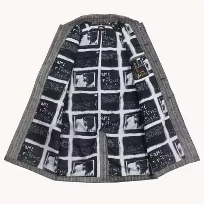 La gabardina lleva impresa en el forro una obra de arte personal de Doherty, mientras que Barât eligió una chaqueta ligera que fuera cómoda de llevar mientras actuaba en el escenario.