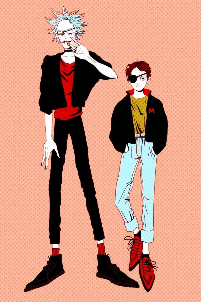 La combinación de colores se ve bien. Morty está usando ropa holgada y dando una mirada de "no te metas conmigo". Mientras que Rick parece estar drogado y haciendo lo que le parezca bien.