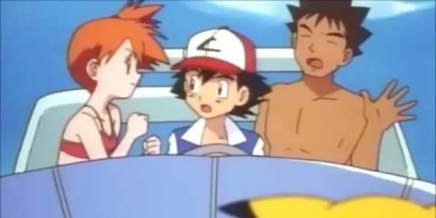 En "La belleza y la playa", el decimoctavo episodio del anime, Ash, Misty y Brock se hacen con una lancha rápida. Aunque Ash cree que Brock se la pidió prestada a un amigo, Brock dice que solo estaba siguiendo a Pikachu, pero como Pikachu sigue a Ash, en última instancia la culpa es suya. Misty no quiere alinearse con un ladrón y le hace saber a Ash lo que piensa de su ingenuidad.