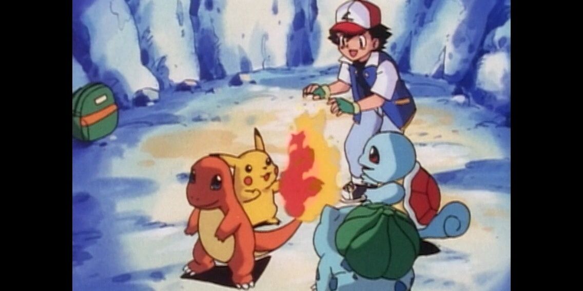 En el episodio "La salida de la nieve", Ash y sus Pokémon quedan atrapados por un derrumbe. Con pocas esperanzas de ser rescatados durante la noche nevada, y tras un intento fallido de cavar una cueva de nieve y mantenerse caliente con la llama de la cola de Charmander, Ash decide arriesgar su propia vida obligando a todos sus Pokémon a volver a sus Pokéballs, dándose cuenta de que es la mejor manera de que su equipo se mantenga caliente.