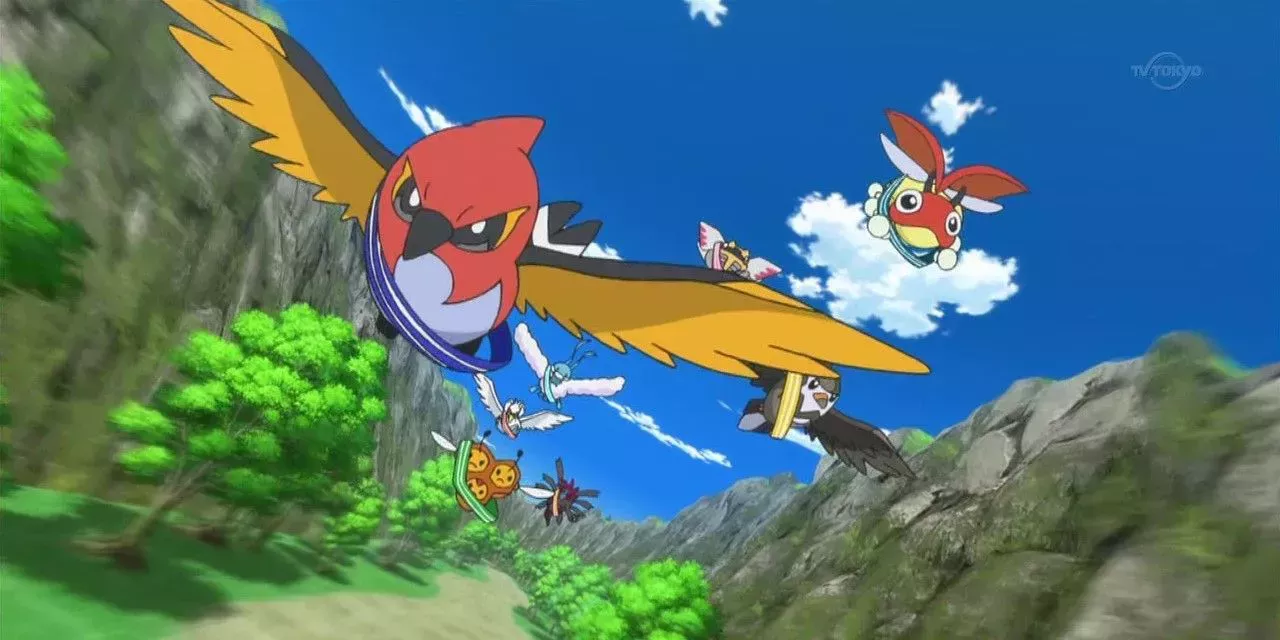 9 Ash tuvo la oportunidad de usar los tres tipos de vuelo de Kalos en la carrera de relevos en el cielo