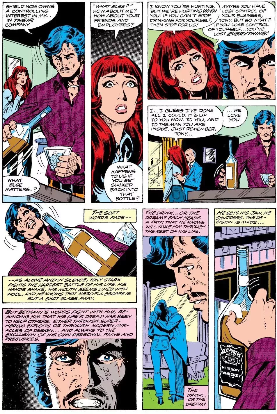 Iron Man #128 (de Bob Layton, David Michelinie y John Romita Jr.) fue famoso por ver a Tony Stark lidiar con su problema de alcoholismo...