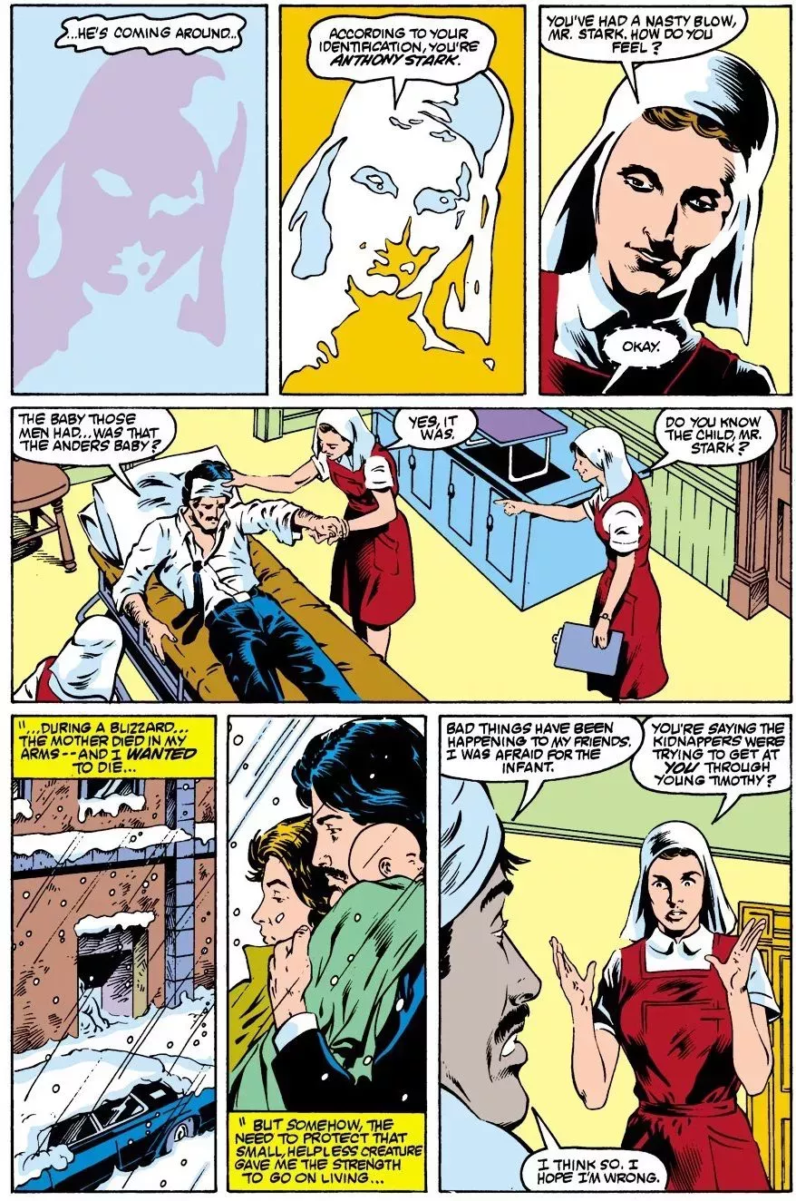 Así que el bebé era una parte ENORME de la vida de Tony Stark en este punto, ya que fue la razón por la que Tony se puso sobrio y fue una de las personas que Stane secuestró para llegar a Tony e incluso fue el rehén FINAL y sin embargo, una vez que fue rescatado... ¡eso fue todo! El bebé nunca fue visto de nuevo. Este bebé jugó un papel tan importante en la vida de Tony Stark y, sin embargo, ¡ningún escritor se ha molestado siquiera en ver al niño!