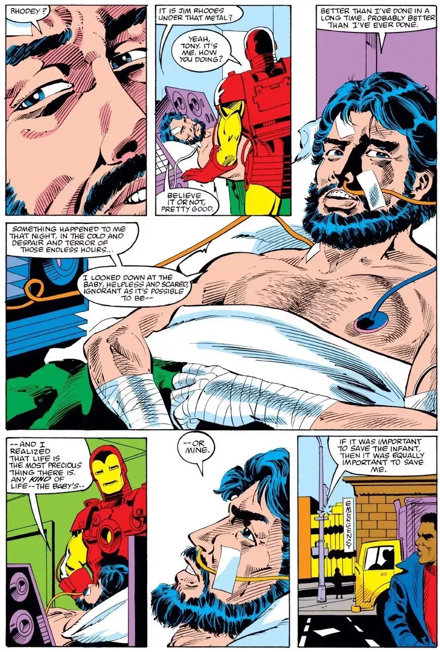Al final del número, Tony ha sido dado de alta y ha dejado de beber. Su necesidad de proteger al bebé de Gretl fue suficiente para mantenerlo con vida durante esa noche y, en última instancia, para superar su adicción.
