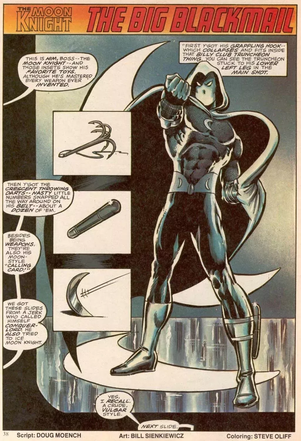 Por último, a partir de una entrevista con Moench y Sienkiewwicz realizada por Christopher LaRochelle en el Back Issue #95 de TwoMorrows, aquí está Bill Sienkiewicz...