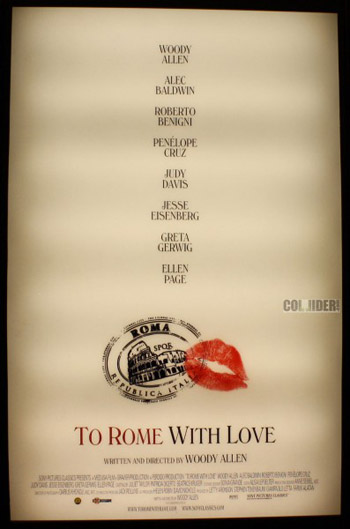 La gente de Collider ha subido bastante material de diferentes películas pero nosotros vamos a quedarnos con tres: dos pósters y un banner. Por un lado nos encontramos con el póster de ‘To Rome with love’ de Woody Allen bastante mejor que su versión italiana y su homóloga americana.