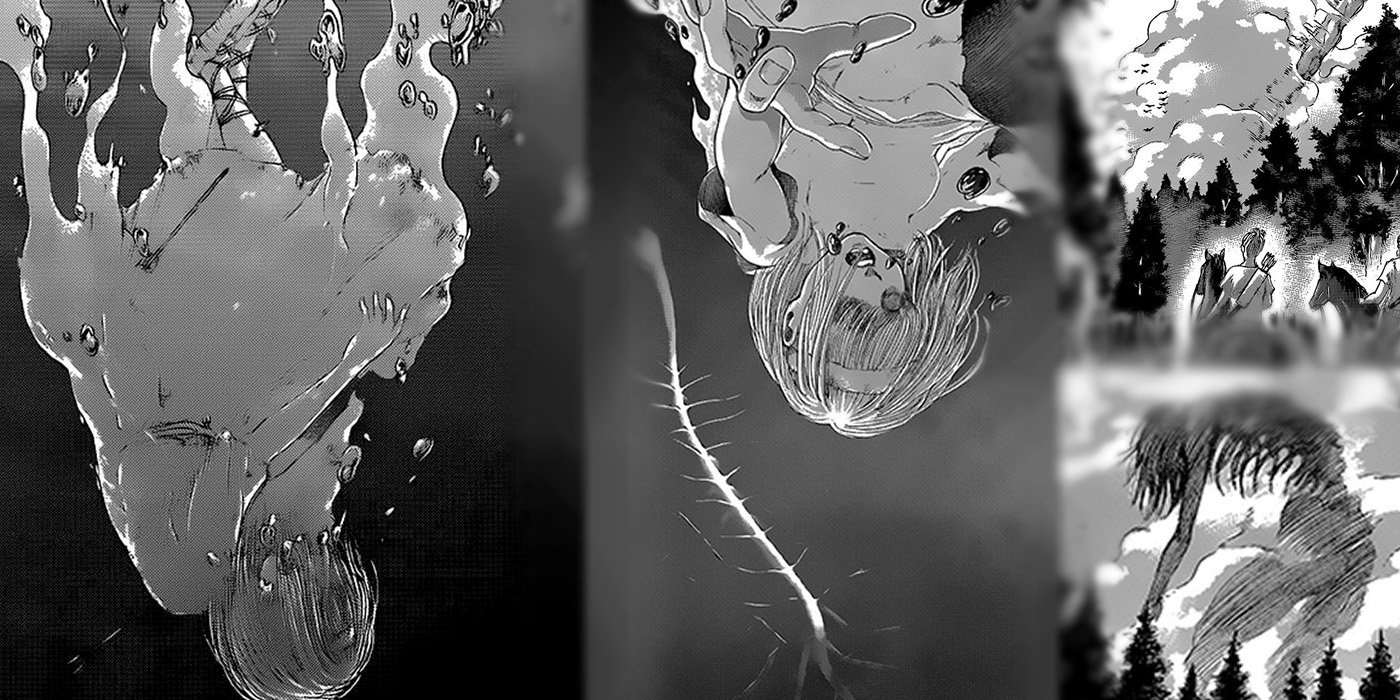 Y, en esa misma línea de pensamiento, Ymir accede a esta "dimensión de los CAMINOS" después de fusionarse con la columna vertebral en este "Árbol de la Vida" o Yggdrasil. Esta dimensión es donde ella crea su forma original de Titán, y donde puede ver todos los recuerdos de los Eldians que se recogen aquí.