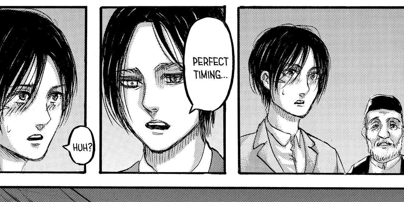 Pero, la teoría también sugiere que Eren está tratando sutilmente de cambiar el futuro, para ver si hay alguna manera para él de escapar de este oscuro camino. Es por eso que constantemente dice cosas raras o vigila las reacciones de la gente a las cosas. Está tratando de ver si son diferentes de sus recuerdos. Todavía no está confirmado, por supuesto, pero hay muchas pruebas a favor de ello.