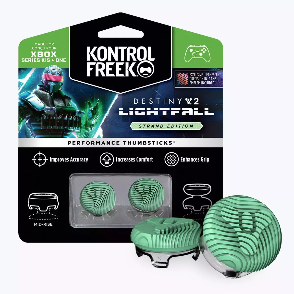 Si quieres darle un toque especial a tu mando y mejorar su rendimiento, Kontrol Freek también ofrece protectores para los pulgares en morado y verde para los mandos de Xbox y PlayStation. Cada par de protectores con textura y agarre tiene un precio de 34,99 $ y puedes adquirirlos en Steelseries, Kontrol Freek o encargarlos por adelantado en la Tienda Bungie.