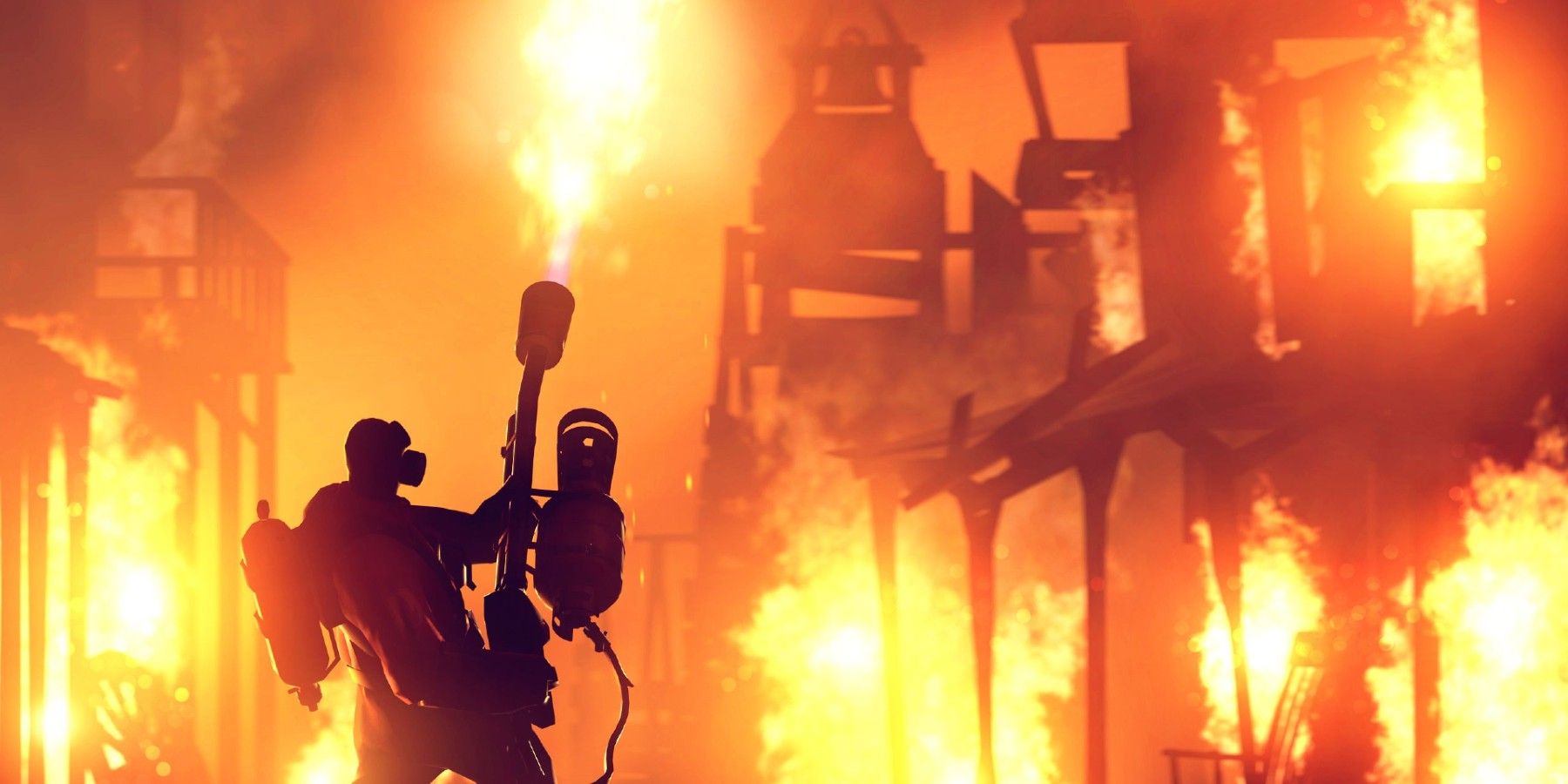 Team Fortress 2Team Fortress 2 es un juego que entiende la importancia de un buen lanzallamas, ya que tiene todo un personaje que se basa en el arma. El Pyro, un misterioso e implícito asesino psicópata que se esconde bajo su siempre presente máscara de gas, es uno de los favoritos de los fans en este humorístico shooter multijugador online.