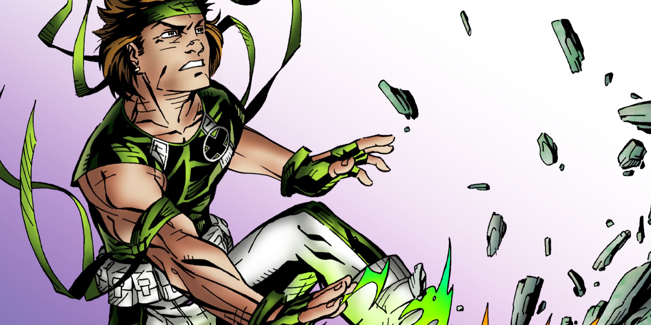 El primer disfraz apropiado de Rictor es uno de los más singulares. Una vez que se unió a la naciente Fuerza X, se puso un disfraz verde y blanco con un montón de pañuelos. Un montón de pañuelos.