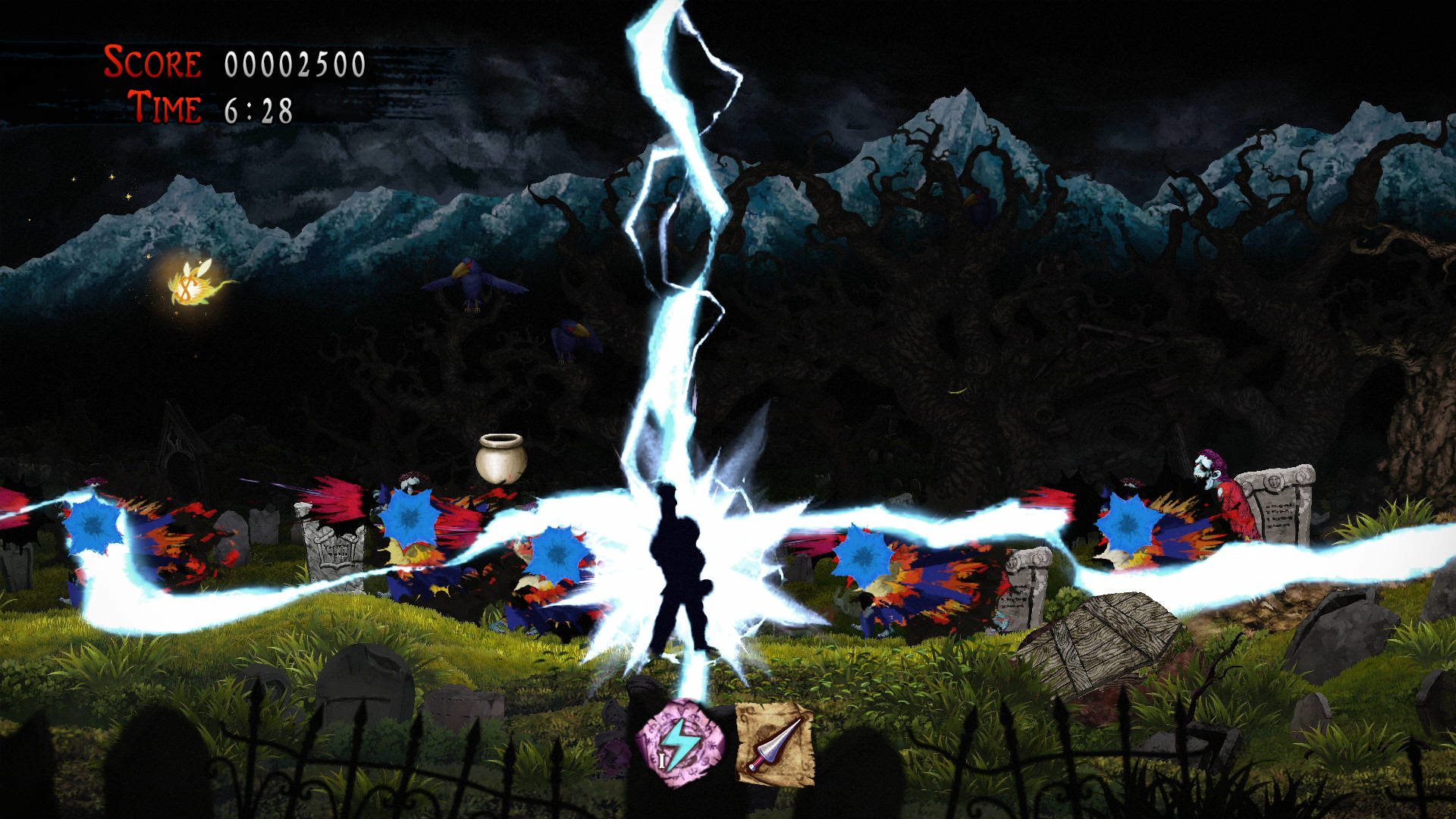 Resurrection también incluye un modo cooperativo, que es una buena adición, pero que no es lo mío (al menos hasta que mis hijos sean lo suficientemente mayores como para preocuparse por este tipo de juegos). Al igual que en otros juegos de plataformas con modos similares, un jugador controla a Arthur, mientras que el otro se encarga de un personaje ayudante. En este caso, se trata del fantasma de un anciano, que puede volar por la pantalla para disparar proyectiles, proteger a Arthur con un escudo de burbujas o incluso construir plataformas. Si eres de los que les gusta jugar en modo cooperativo, este modo será probablemente un buen complemento, y puede proporcionarte un poco de ayuda extra para superar los retos que te esperan, o un poco de regocijo diabólico si eres el jugador dos y usas esas plataformas para entorpecer en lugar de ayudar.