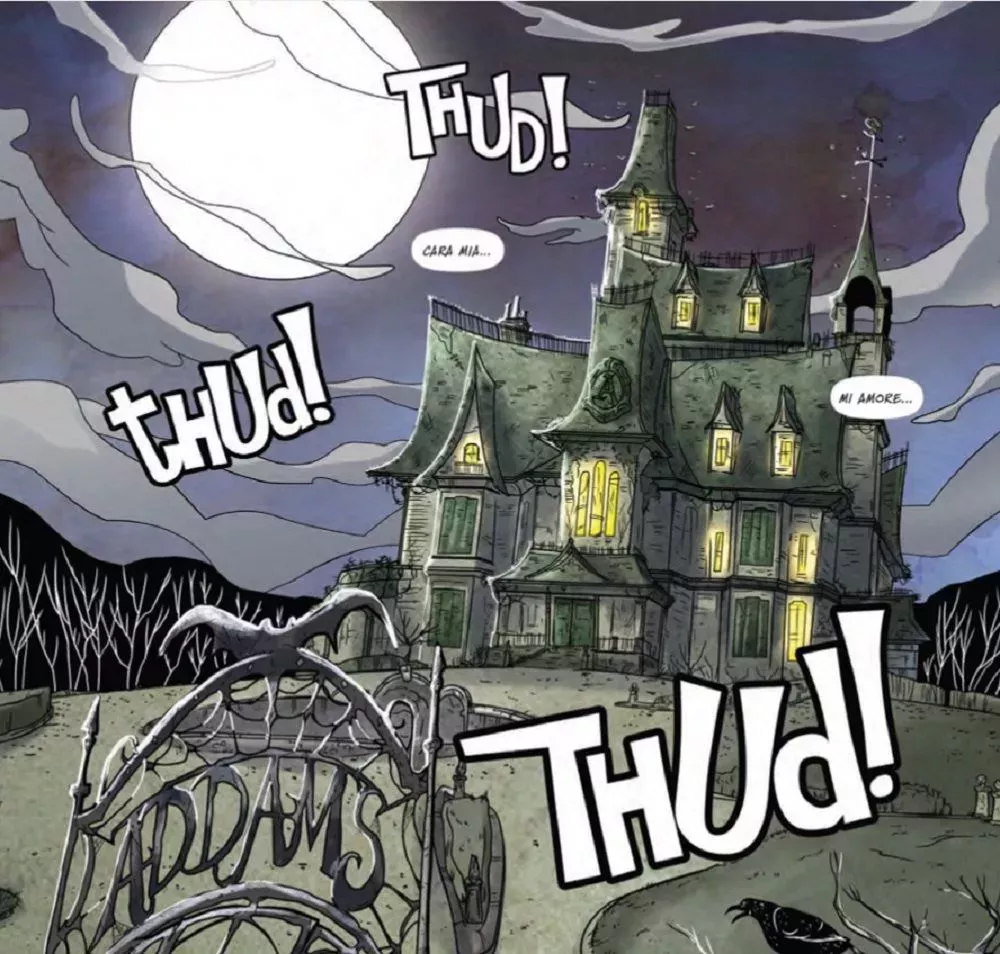 Murphy y Keane combinan sus habilidades para producir un libro que es un maravilloso guiño a la pelÃcula. Desde los fondos hasta los diseños de los personajes y la arquitectura, sus efectos visuales tienen el mismo tono espeluznante pero juguetón. El dibujante y el entintador hacen magia al recrear la espeluznante casa de los Addams, y el poltergeist de la diversión habita en cada macabra trampa que se muestra.
