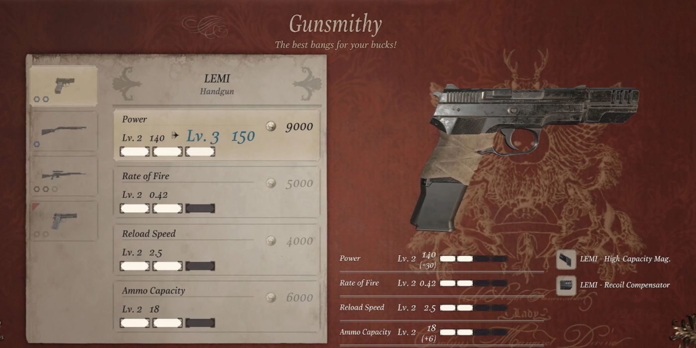 6 Como RE4: Las armas pueden ser mejoradas por el comerciante