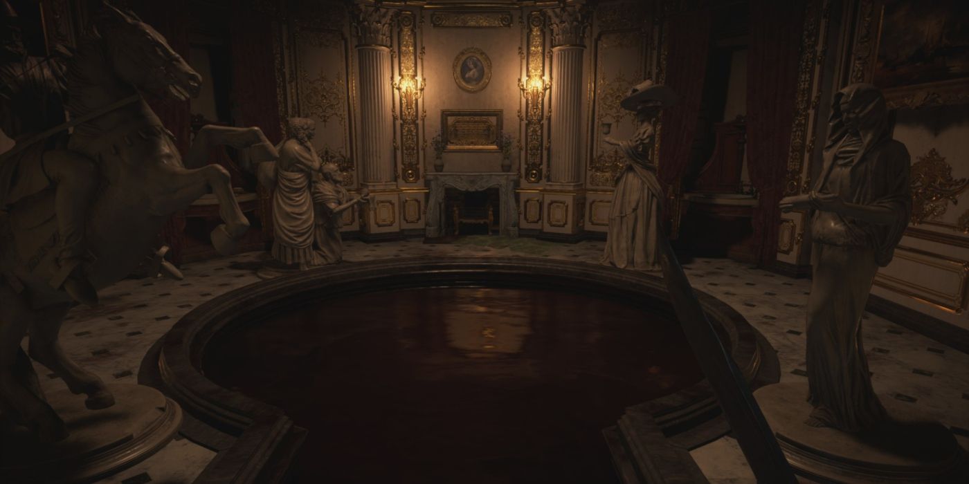 El primer rompecabezas lógico del juego hace que Ethan gire las estatuas en una de las dos posiciones para vaciar la bañera llena de sangre. No se dice abiertamente el propósito de la bañera, pero se puede deducir mucho sobre la inspiración de la misma. Además de Drácula y sus novias, los Dimitrescu parecen estar basados en Elizabeth Bathory.