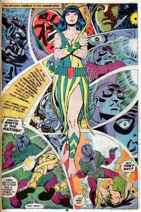 En ‘Guardianes de la Galaxia Vol. 2’ se presentará el personaje de Mantis, creada por Steve Englehart en páginas de Los Vengadores, una maestra en artes marciales que creció en el templo terrestre de los Sacerdotes de Pama, culto religioso proveniente del mundo alienígena de los Kree. Los Sacerdotes de Pama creían que Mantis era la Madonna Celestial, destinada a concebir al Mesías Celestial, “el más importante ser en el universo” y salvador de la galaxia, pero para hacerlo debía unirse con el elegido y más antiguo de la raza alienígena de los Cotati.