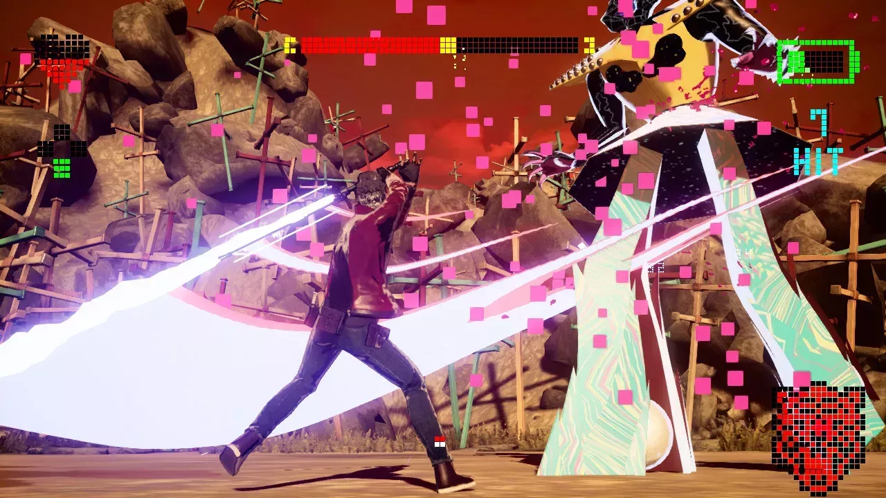 Travis quiere salvar la Tierra, por supuesto, pero también es vulnerable cuando se trata de otras personas en su vida. Está Badman (con quien entabló una amistad en Travis Strikes Again), Bad Girl (o "Charlotte", como la llama él, para su disgusto), Shinobu y, por supuesto, su gato, Jeane, que tiene un papel más pronunciado en este juego. Darle a Travis algo y alguien por quien preocuparse aparte de él mismo me hizo sentir más involucrado como jugador, pero Suda51 no se excede en hacer de Travis un blandengue. Sigue siendo tan testarudo y sanguinario como siempre, y Robin Atkin Downes lo da todo para dar vida a Travis, metiéndose de lleno en cada lÃnea con gusto y sin cohibirse, por muy cursi o ridÃcula que sea la situación. Es una de mis interpretaciones favoritas en un videojuego, y es un gran recordatorio de por qué Travis sigue siendo un personaje tan querido.