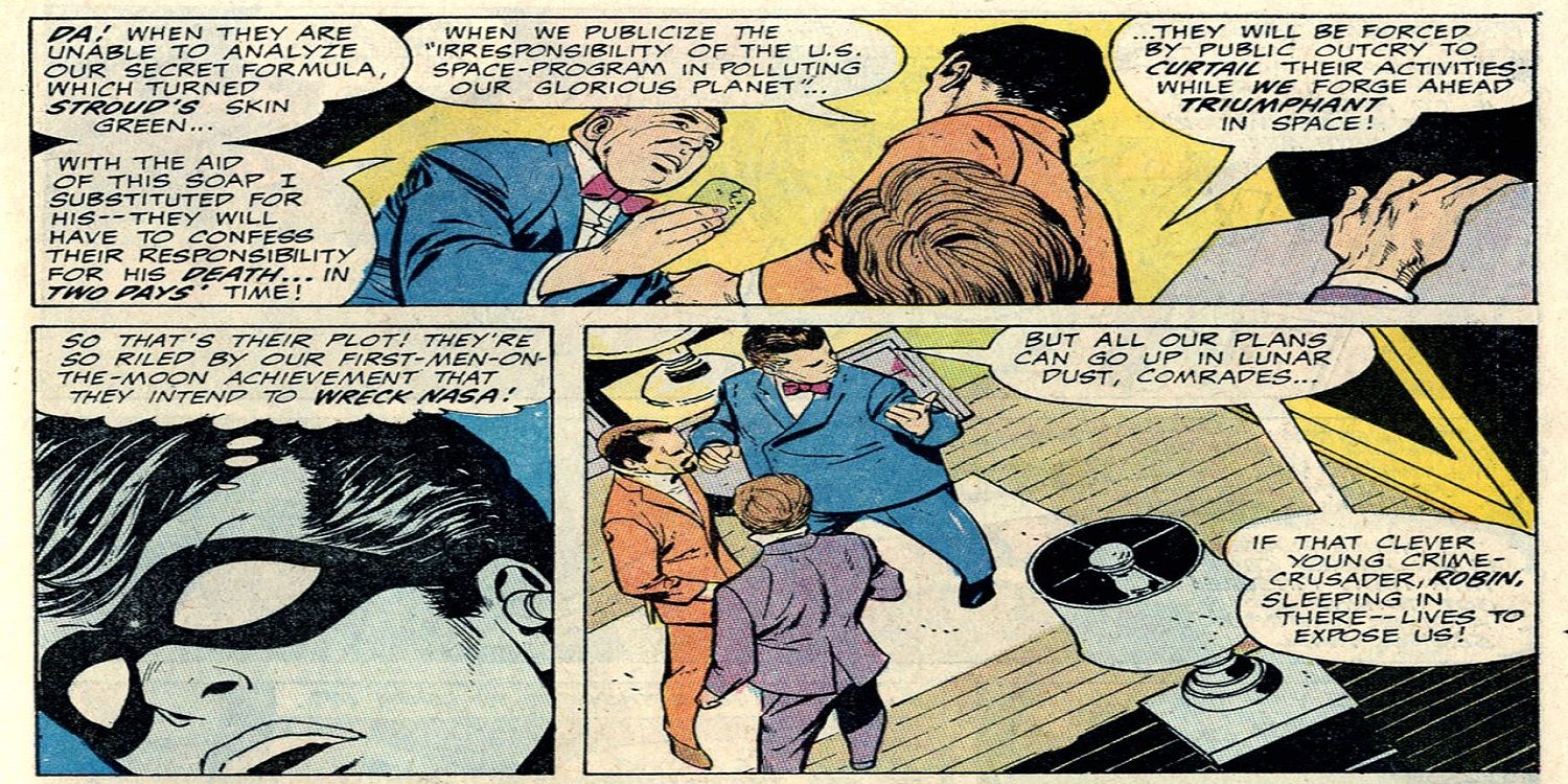 El profesor saboteó una roca lunar descubierta por la NASA para cubrir a un estudiante con una misteriosa energía verde que lo habría matado si no encontraban la cura a tiempo. Afortunadamente, Robin logró frustrar el plan, que pretendía hacer quedar mal a la NASA como venganza por haber ganado la carrera espacial contra los soviéticos.