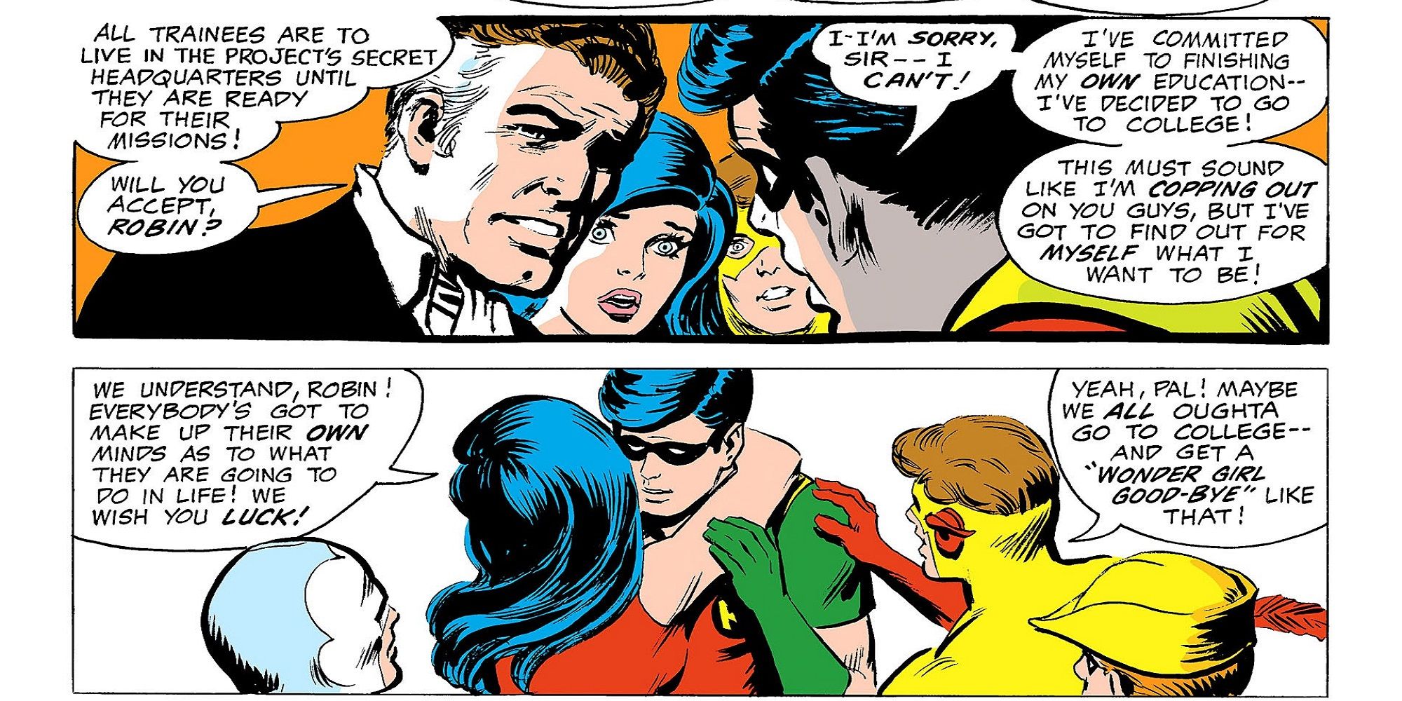 El Chico Maravilla original es conocido por muchas cosas: Ha sido el líder de los Adolescentes Titanes/Titanos, ha sido miembro de la Liga de la Justicia, e incluso se las arregló para convertirse en Batman. Pero lo que muchos fans (incluso los de hace tiempo) no saben es que el personaje pasó algún tiempo en la universidad.