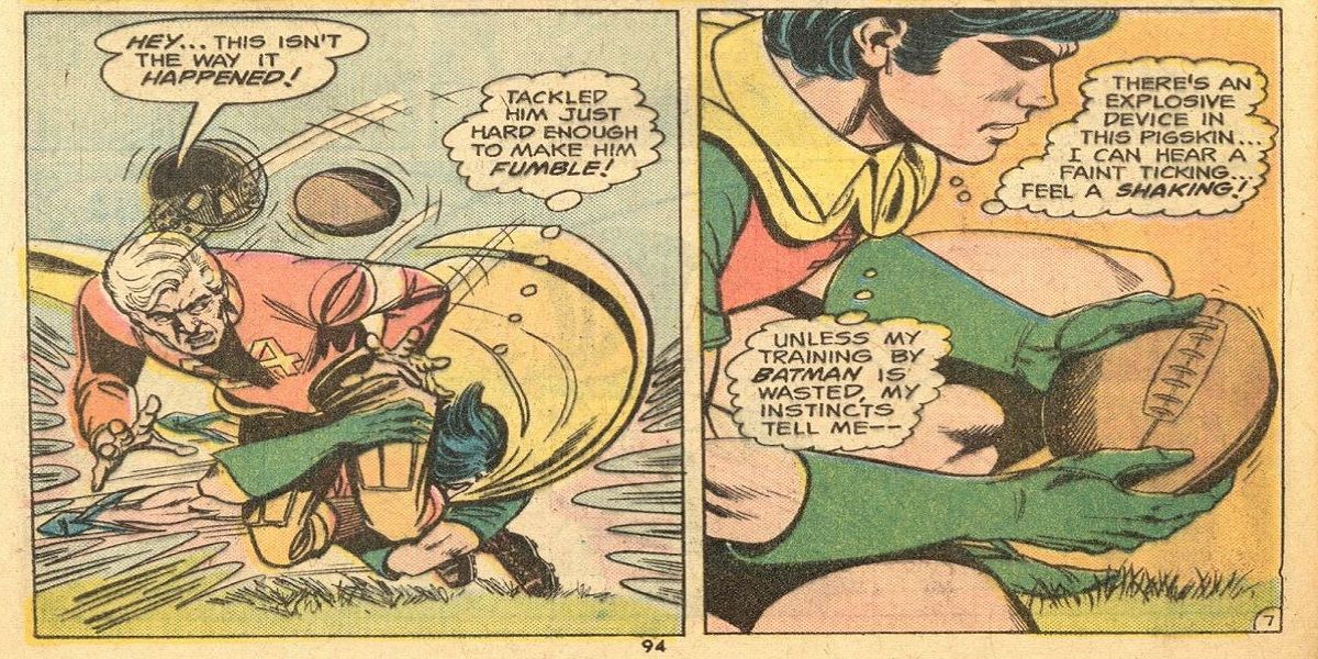 Las historias anteriores que presentaban a Dick Grayson como un héroe en solitario lo noquearon con bastante frecuencia. Esto parecía suceder en cada número, y la única vez que no le sucedió a él, le sucedió a Batichica porque estaban unidos.