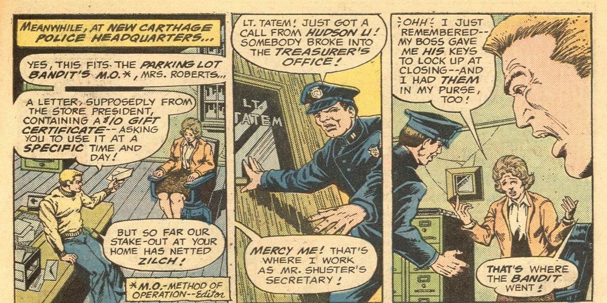Uno de los últimos problemas durante el tiempo que Dick estuvo en la universidad lo involucró trabajando para detener a un ladrón de estacionamiento. El ladrón le robaba el bolso a una mujer en el estacionamiento, y luego robaba la casa de la mujer con las llaves en su bolso. Pero aunque lograron atrapar al ladrón, más tarde se enterarían de que uno de los robos involucraba a la oficina del tesorero de la universidad, un crimen por el que el ladrón del estacionamiento se negó a aceptar la culpa.