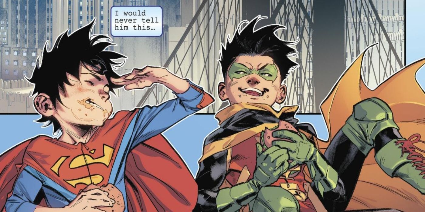 Los Súper Hijos, Damian Wayne y Jon Kent, los hijos de Batman y Superman, en última instancia quieren hacer lo correcto, ya que son los hijos de dos de los más importantes y populares superhéroes. Sin embargo, cuando llega el momento de que los dos actúen, parece que sus padres los están frenando. Deciden ir en contra de los deseos de sus padres en Súper H ijos #4 de Peter Tomasi y Jorge Jiménez, tratando de escabullirse para luchar contra el crimen.