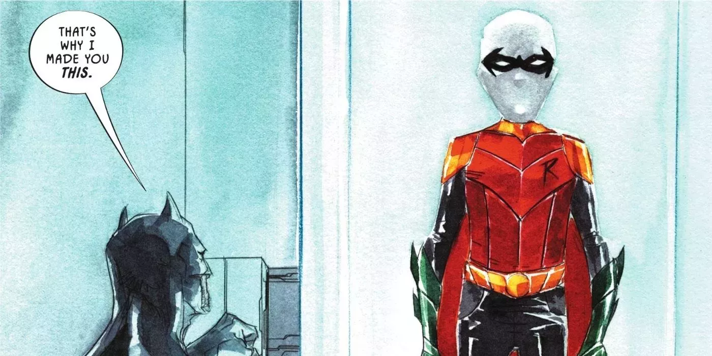 La gran revelación del icónico traje de Robin es un momento agridulce para él, ya que aunque es un gran gesto por parte de Batman, y una señal de que se le permitirá reunirse con su mentor en las calles de Gotham, también simboliza una ruptura de la privacidad y la confianza. Prueba de que nada en la Mansión Wayne puede ocultarse a Batman, este es el momento en que Dick se da cuenta de que si quiere vivir la vida de Robin, tendrá que sacrificar la oportunidad de tener una infancia normal.