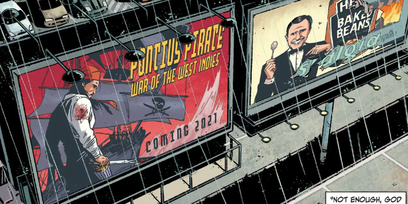 Myerson se revela como el creador de Pontius Pirate, una serie de cómics de los años 60. En el original de Watchmen, el cómic pirata Tales of the Black Freighter jugó un importante papel de apoyo a nivel temático. Puede que no sea el mismo cómic, pero Rorschach también presenta su propia serie de cómics inspirada en los piratas.