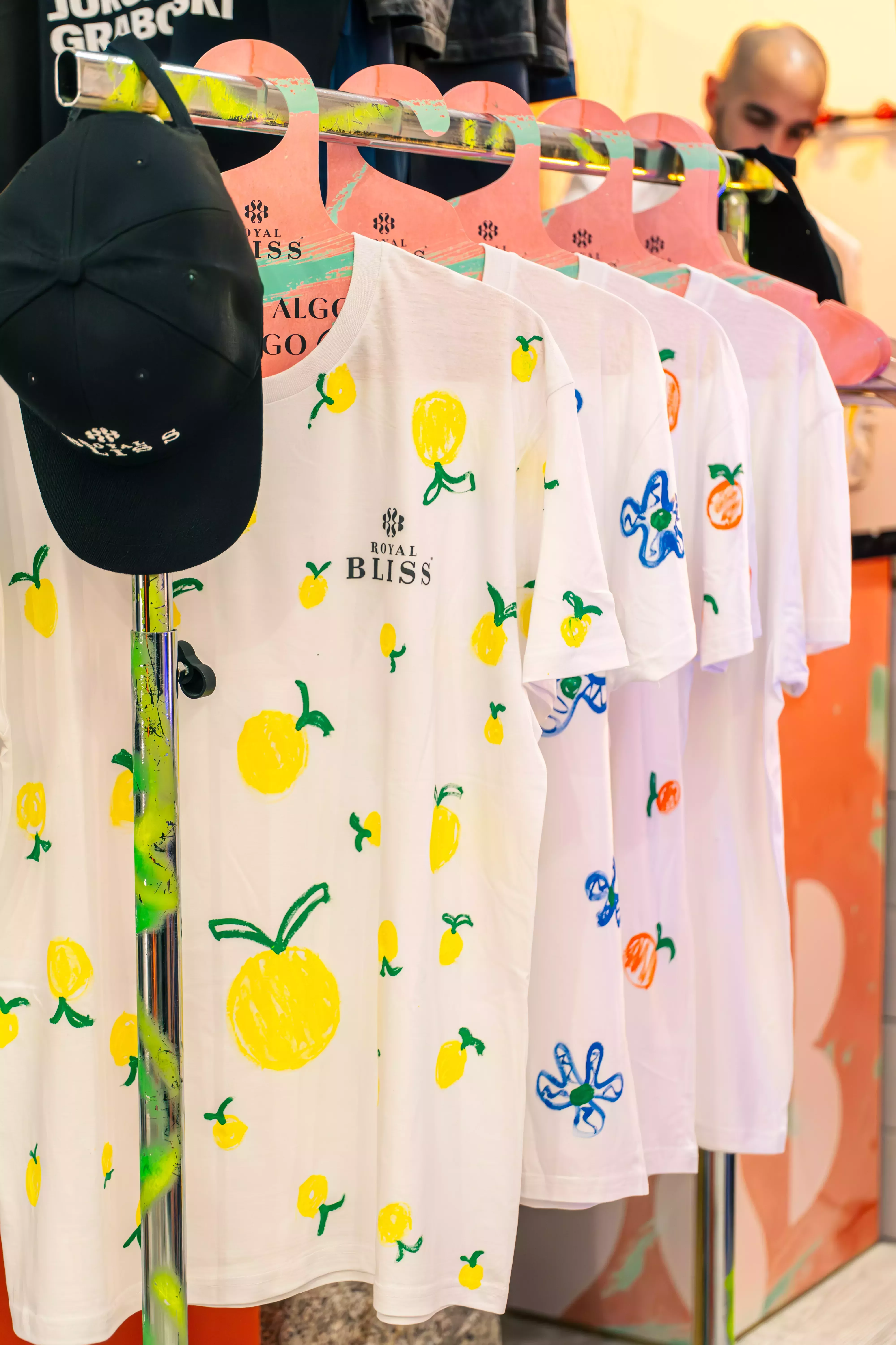 - La Gamberra Vintage. Diseño textil (Calle de la Palma, 39): La tienda second-hand acogió una sesión de DJ a cargo de Toni Aparisi, mientras el artista Emmanuel Carvajal transformaba las prendas de los asistentes con intervenciones artísticas en vivo. Los combinados Royal Bliss no faltaron, y añadieron un toque premium a la velada.