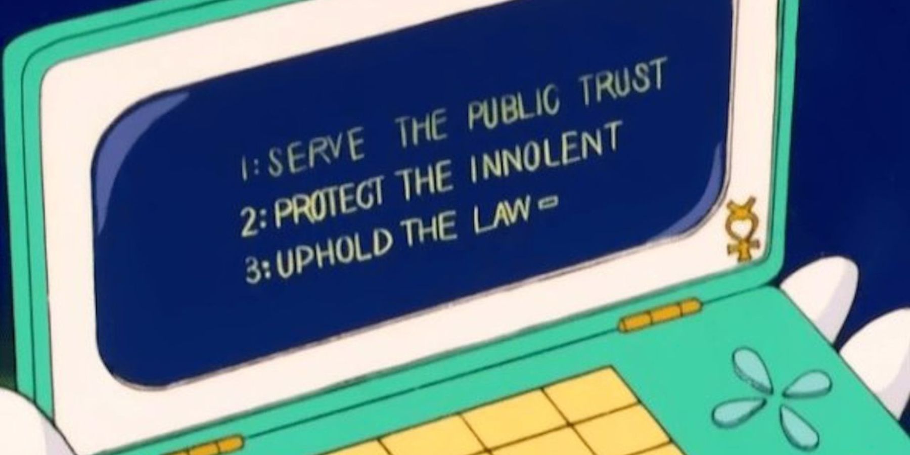 Estas son las directivas principales programadas en el oficial Murphy en RoboCop. Irónicamente, una de las primeras ideas era que Sailor Mercury fuera un ciborg.