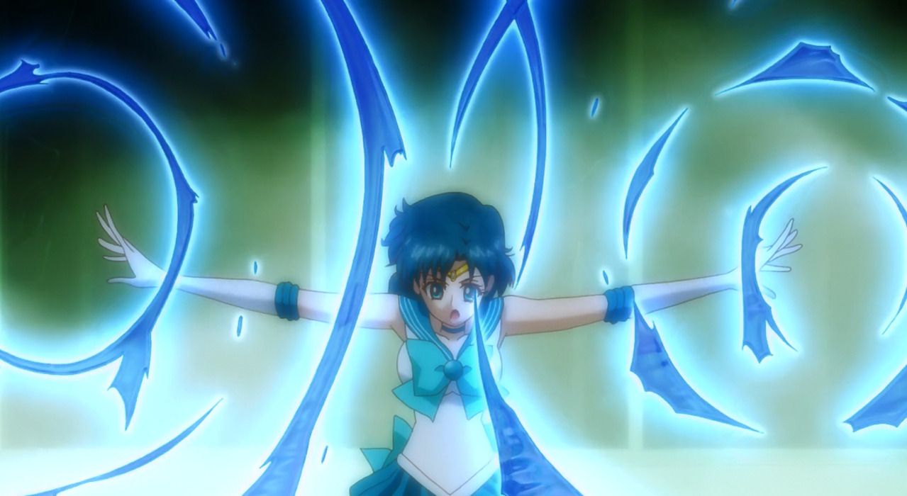El marinero Mercurio puede haber sido el estratega del equipo proporcionando cobertura defensiva, pero recibió tres poderosos ataques ofensivos que le ayudaron a parecer aún más genial. Uno de ellos fue Mercury Aqua Rhapsody, introducido en el acto 40 del Manga, donde Ami utiliza el Arpa de Mercurio para lanzar una ráfaga de agua helada.