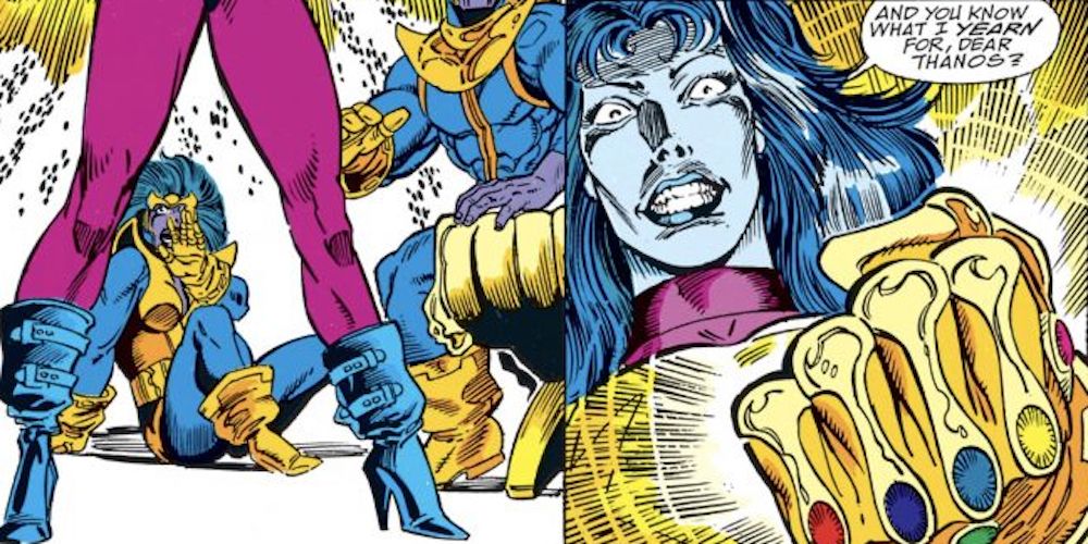 El guante del infinito es el más comúnmente asociado con Thanos y es convincente ver como el tirano lentamente aliena a los que lo rodean, incluyendo a su familia, para lograr su objetivo. La relación entre Thanos, Gamora y Nebulosa es una de las más profundas y complicadas de todos los cómics de Marvel, pero el guantelete actúa como una herramienta de poder y respeto entre Thanos y Nebulosa. El Titán Loco usa el guante para convertir a la Nebulosa en un zombi no muerto, pero ella se venga robando el guante de él, aunque no sea capaz de mantener la reliquia por mucho tiempo.