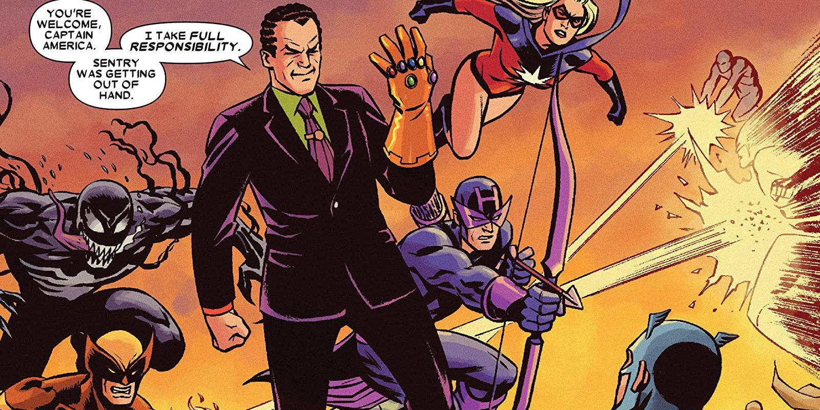 El multiverso puede parecer a veces un truco, pero uno de sus usos más creativos ha sido con el Consejo Interdimensional de Cañas. Reed Richards es una de las mentes más grandes del universo, así que es lógico que los Richards de otros universos sean igual de brillantes. Richards recurre a este poderoso grupo de cerebros en busca de consejo, sólo para saber que varios de los más competentes Richards vienen equipados con guanteletes de infinito que han usado para mejorar sus respectivos universos. Es alentador ver que este poder no se corrompe y que en realidad ayuda a mejorar el multiverso.
