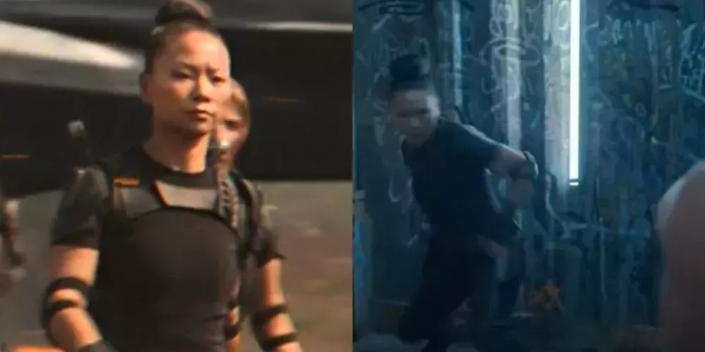 Interpretada por Jade Xu, los fans la habrán visto como una de las viudas que se enfrenta a Natasha Romanoff antes de ser liberada del control de la Habitación Roja en la película de la Viuda Negra. En esta última, su personaje no tiene nombre. Helen lucha contra alguien que tiene lo que parece ser la fórmula Extremis en su sistema basándose en su piel brillante.
