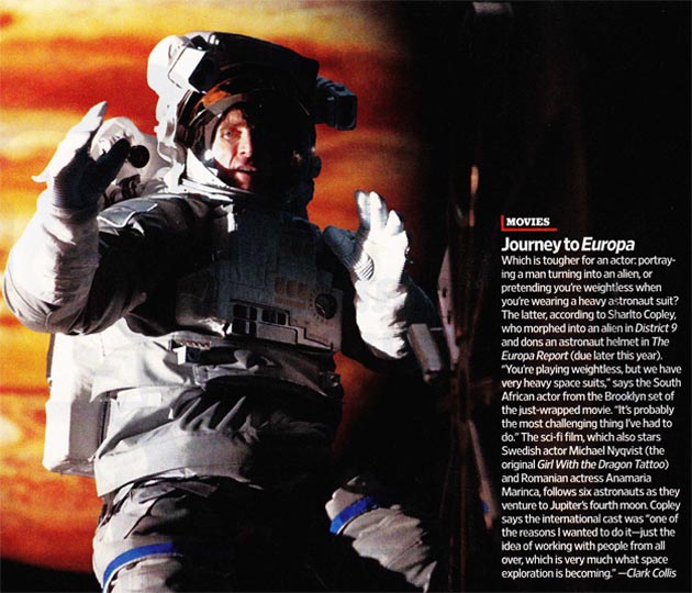 Sharlto Copley es un actor consolidado en el mundo de la ciencia ficción que, por alguna razón, apareció en 'El equipo A'. Ahora, de vuelta al redil, le podemos ver protagonizando la primera imagen de 'The Europa Report'.